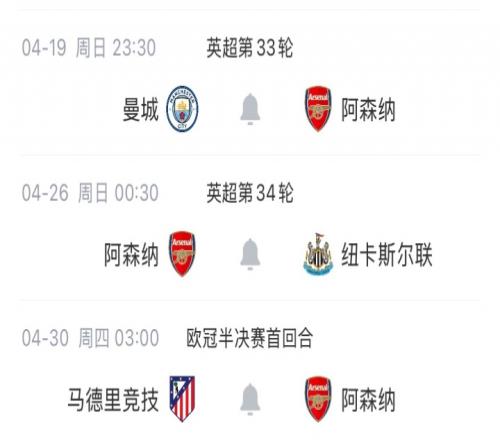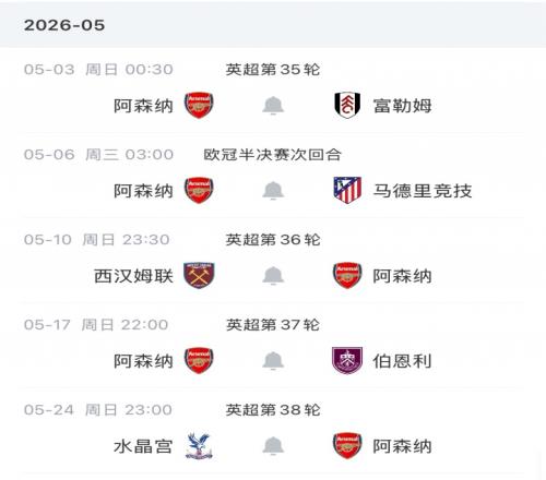 阿森納賽程: