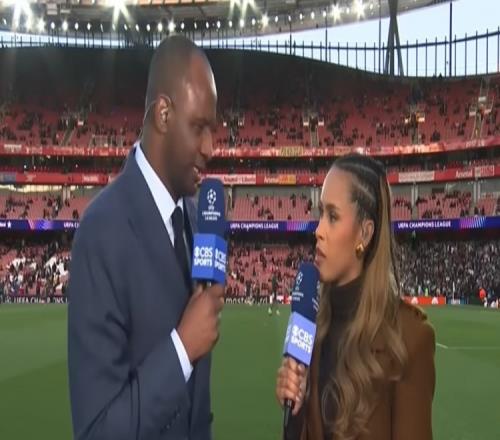 體育播報4月16日宣 在阿森納對陣葡萄牙體育的歐冠1/4決賽次回合比賽場邊,槍手前隊長維埃拉作為評述嘉賓點評了阿森納的處境和歐冠、英超的爭冠形勢。