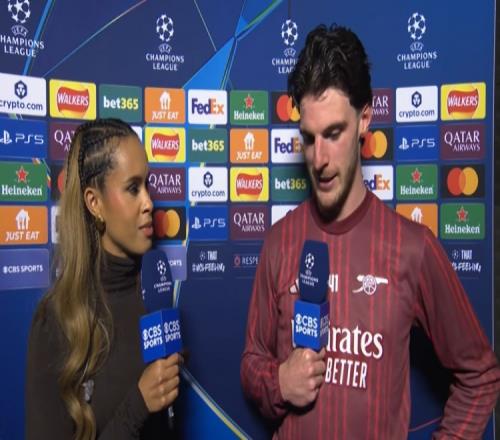 體育播報4月16日宣 歐冠1/4決賽次回合,阿森納主場0-0戰(zhàn)平葡萄牙體育,總比分1-0晉級半決賽。賽后,賴斯接受了CBS的采訪。
