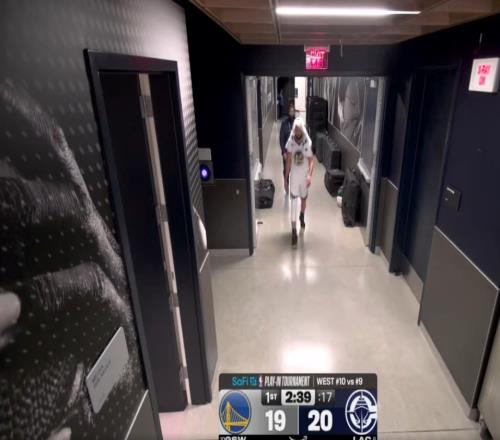 附加賽對陣快船!首節(jié)最后階段庫里走回更衣室目前已回到替補(bǔ)席
