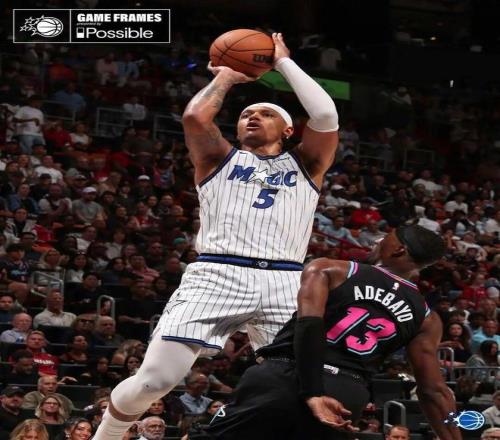 去年他打了46場,場均25.9分7.5籃板4.8助攻。今年打了72場,場均22.2分8.4籃板5.2助攻。得分掉了3.7分,助攻漲了0.4個。三分命中率從32%掉到30.5%。不是退步,是原地踏步。但魔術(shù)給了他5年2.39億的頂薪,2031年才到期。這份合同,現(xiàn)在看起來像一顆定時炸彈。