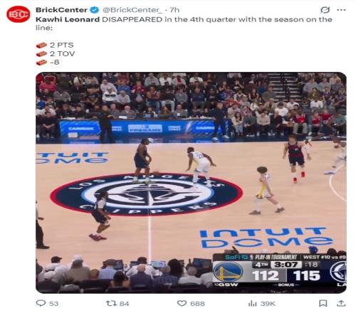 這場(chǎng)比賽倫納德在末節(jié)的表現(xiàn)非常拉胯,美媒BC寫(xiě)道,倫納德在整個(gè)第四節(jié)只拿到2分2失誤,正負(fù)值-8,而且倫納德唯一的2分還是在比賽已經(jīng)失去懸念時(shí)刷的,終場(chǎng)前40秒他被追夢(mèng)搶斷更是拉胯至極。