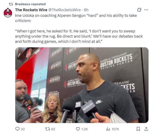 烏度卡還談到近期對(duì)申京非常嚴(yán)厲,他說道:我剛來的時(shí)候申京自己要求我直接一點(diǎn),不需要我把他的小毛病掩蓋過去,在比賽中可以強(qiáng)硬的爭(zhēng)論他不會(huì)介意這些東西。