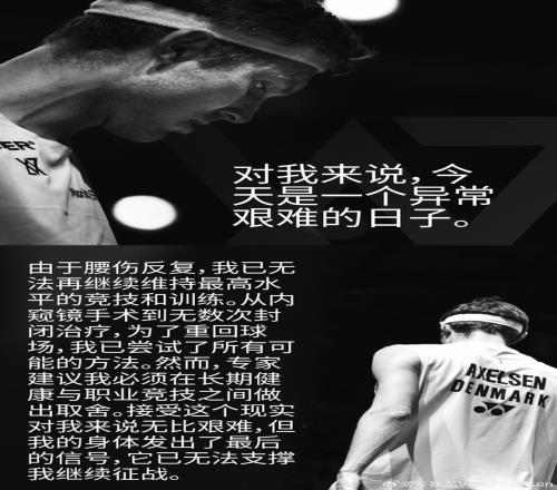 兩屆奧運(yùn)會(huì)羽毛球男單冠軍丹麥名將安賽龍宣布退役