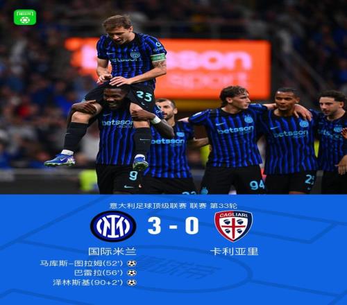 北京時間4月18日意大利足球頂級聯(lián)賽第33輪,國際米蘭主場對陣卡利亞里。比賽中,馬庫斯-圖拉姆接隊友傳球破門,巴雷拉打入一球,隨后澤林斯基在隊友助攻下再下一城。最終國際米蘭3-0戰(zhàn)勝卡利亞里。