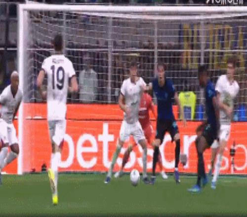 第53分鐘,打破僵局,迪馬爾科助攻,圖拉姆門前輕松破門,國米1-0領(lǐng)先