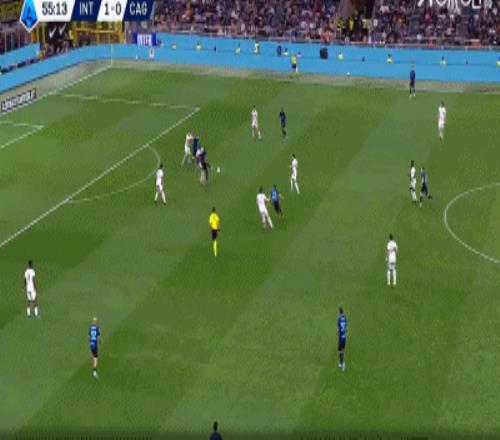 第56分鐘,鄧弗里斯打門被擋,巴雷拉插上爆射破門,國米2-0領(lǐng)先