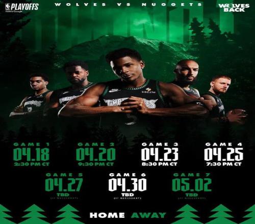 掘金打森林狼,比賽的間隔時間:1天、2天、1天、1天、 2天 、1天,大部分都是打一休一,符合以往季后賽首輪的比賽節(jié)奏。