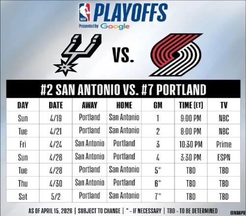 系列賽前三場和第四到第五場之間,都是 三天 打一場 。這種“打一休二”的節(jié)奏在季后賽首輪非常罕見。