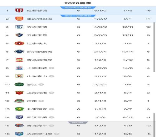 北京時(shí)間4月18日,隨著第二個(gè)比賽日2場(chǎng)比賽順利進(jìn)行,中超聯(lián)賽第6輪比賽結(jié)束。6輪過(guò)后的積分榜,3支球隊(duì)保持不敗,西南三強(qiáng)格局被打破,二年級(jí)生大連英博升至第3,上海申花則沖到前8,3支球隊(duì)積分仍是負(fù)數(shù)。