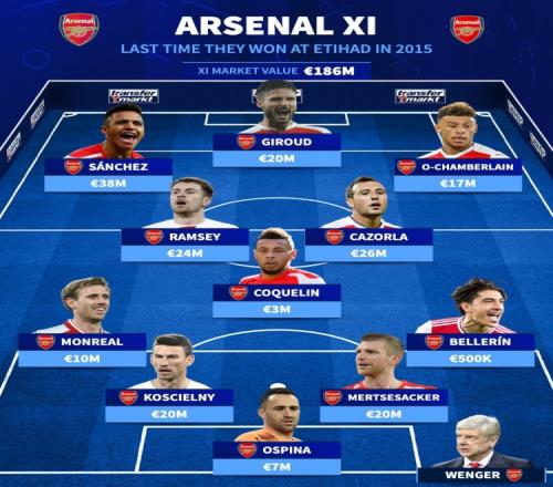阿森納當年的首發(fā)陣容:總身價1.86億歐元