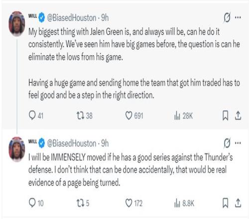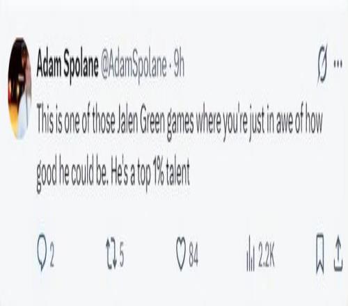火箭記者Adam Spolane寫到:這場是杰倫-格林堪稱完美的表演,他展現(xiàn)出了超凡的天賦令人驚嘆,他就是金字塔尖百分之一的天賦。