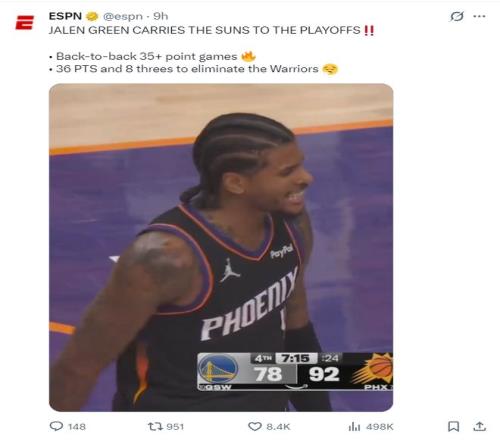 ESPN都說是杰倫-格林帶領(lǐng)太陽隊進入季后賽。