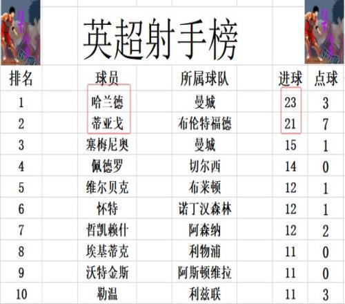 射手榜方面,哈蘭德和蒂亞戈的競(jìng)爭(zhēng)也是很激烈,哈蘭德2球的優(yōu)勢(shì)力壓蒂亞戈繼續(xù)領(lǐng)跑,第三的塞梅尼奧落后哈蘭德8球,幾乎是沒可能競(jìng)爭(zhēng)金靴了。?;倏?,沃特金斯,勒溫11球剛好擠入前十。