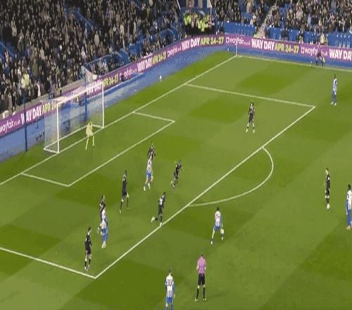 第91分鐘,費布魯亨大腳長傳,德克伊珀左路插上倒三角傳中,維爾貝克鏟射得手,布萊頓鎖定勝局,3-0!