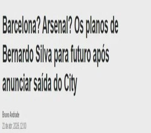 ESPN巴西站消息,貝爾納多-席爾瓦將在今夏成為自由身,而阿森納令人驚訝的成為了曼城球星的追求者,巴薩則同樣正在密切關注這名老將的情況。