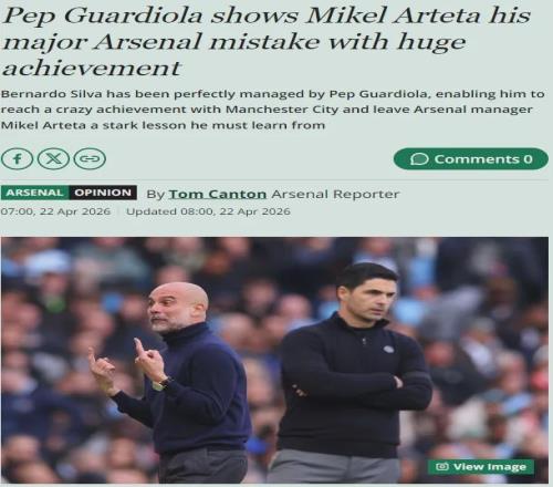 倫敦足球記者TC撰文表示,瓜迪奧拉對貝爾納多-席爾瓦的使用可以作為案例,給阿爾特塔如何管理好自家關鍵球員好好上一課。