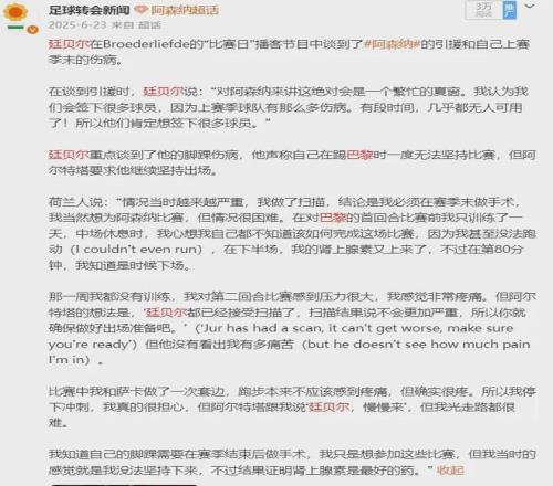 很多人甚至說薩卡現在是“毒瘤”,你要想想薩卡多大出道,他多大的時候就成為了連續(xù)出戰(zhàn)英超比賽的紀錄保持者,而且這還是邊鋒,是被重點照顧對象……連續(xù)87場英超比賽出戰(zhàn),125場英超比賽進入大名單出戰(zhàn)125次,經常球隊2球以上領先也要踢滿全場……其實早在薩卡腿筋受傷之前我們就說了,該休息了該休息了,再用就要出事,因為這是自然規(guī)律,不是說我們多么高明。現在賴斯也一樣,你不讓休息,球員的身體就會強制讓他休息,絕無例外(我絕不是咒球員,相反我祈禱沒事)。