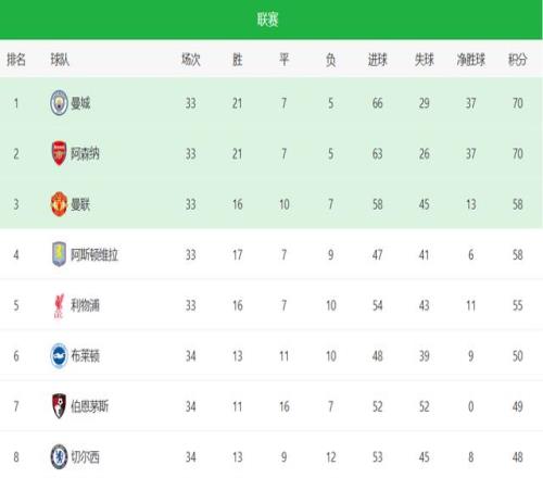 4月11日的英超第32輪,阿森納主場1-2負(fù)于伯恩茅斯,爆出冷門。12日的英超,曼城3-0拿下切爾西。積分榜上,阿森納32場70分,曼城31場64分,少賽1場的藍(lán)月亮,將分差縮小到6分。