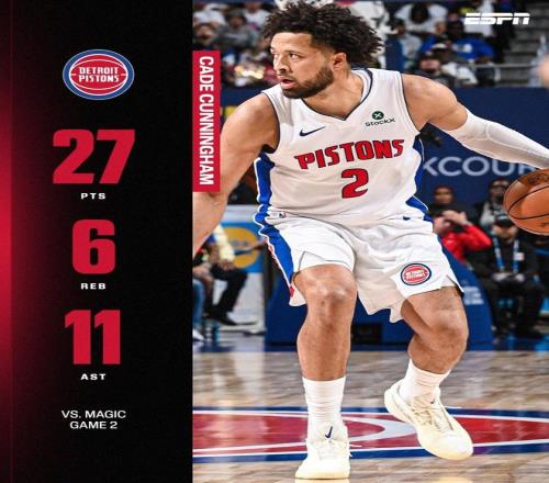 坎寧安27+6+11暴走創(chuàng)紀(jì)錄,活塞完勝魔術(shù)!貝恩11中2,班凱羅18+8