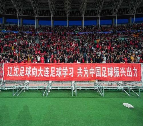 雖然是德比戰(zhàn),但鐵人俱樂(lè)部盡全力滿足大連球迷客場(chǎng)觀賽的欲望。鐵人球迷在現(xiàn)場(chǎng)打出“歡迎大連”“遼沈足球向大連足球?qū)W習(xí),共為中國(guó)足球振興出力”的橫幅,彰顯省會(huì)城市的胸襟。