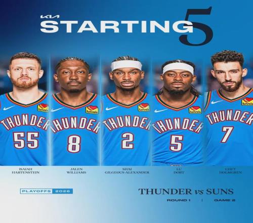 雷霆首發(fā):亞歷山大、多爾特、杰倫-威廉姆斯、霍姆格倫、哈滕。太陽首發(fā):吉萊斯皮、布克、杰倫-哥倆、狄龍、伊戈達羅。太陽中鋒馬威左腳酸痛繼續(xù)休戰(zhàn),算上常規(guī)賽和附加賽,馬威已經(jīng)連續(xù)缺席3場。古德溫小腿受傷也不能打!