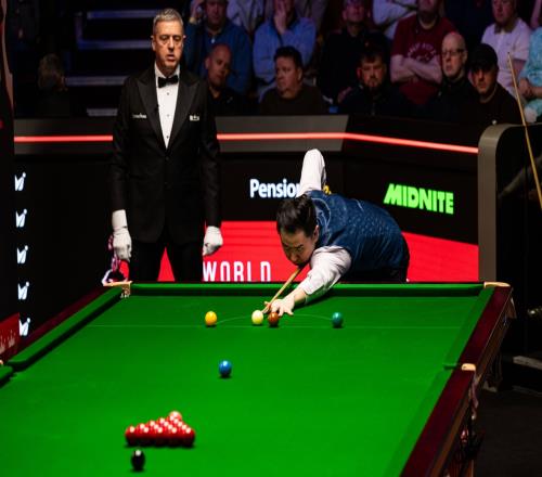 第二階段開始后墨菲連勝三局,第十二局肖國棟打出單桿74分扳回一局,第二階段上半場(chǎng)戰(zhàn)罷,墨菲以9-3的比分暫時(shí)領(lǐng)先肖國棟。