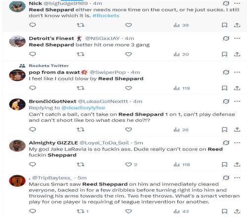 太多的火箭球迷對謝潑德忍無可忍了:1.連球都拿不??;2.籃下上籃都上不進;3.我覺得我都比謝潑德更強;4.實在是太差勁了,這還給他更多登場時間;