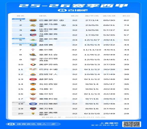 西甲同分對比原則:相互戰(zhàn)績→相互凈勝球→聯(lián)賽凈勝球→聯(lián)賽進(jìn)球
