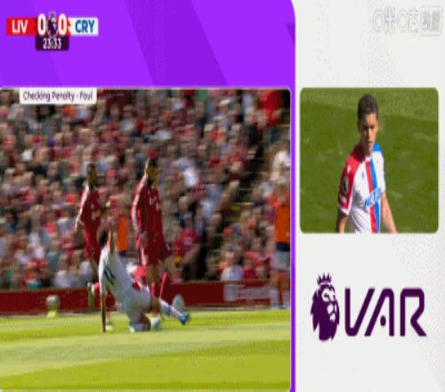 第24分鐘,布倫南禁區(qū)線附近放鏟薩拉赫,主裁判經(jīng)VAR確認(rèn)沒有點(diǎn)球