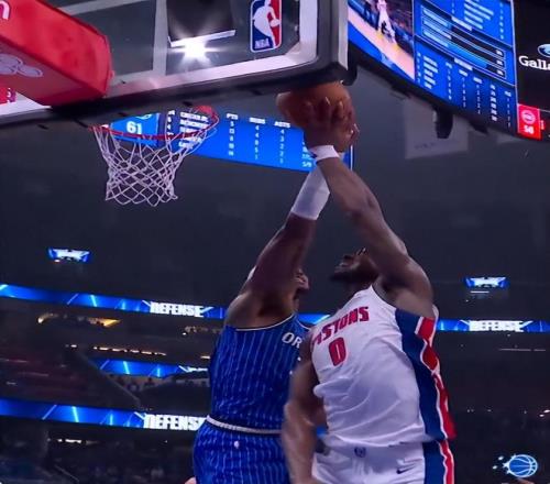 但末節(jié)開場魔術(shù)的外線手感一下沒了,活塞一波5-0縮小到1分,卡因直接隔扣杜倫全場球迷起立歡呼?;钊D難扳平后又是卡因連拿4分拉開差距,杜倫進(jìn)攻犯規(guī)(第五次),貝恩打板三分命中一錘定音了,貝恩血都被挖出來了但裁判卻沒有吹犯規(guī)。