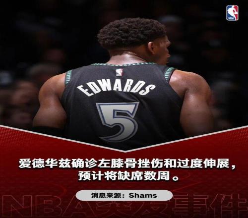 今天,森林狼官方宣布:愛(ài)德華茲確診左膝過(guò)度伸展+骨頭挫傷,列入每周觀察名單。