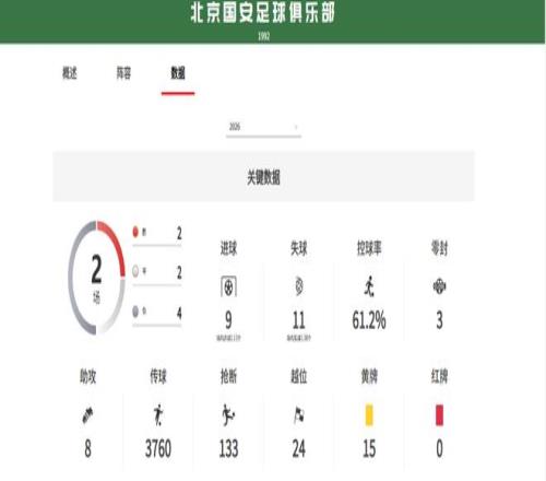 上賽季前8輪過(guò)后,北京國(guó)安取得4勝4平,整個(gè)賽季的勝率是56.67%。本賽季八輪過(guò)后,他們僅收獲2勝2平4負(fù),勝率相比上賽季總勝率下滑近30個(gè)百分點(diǎn)。