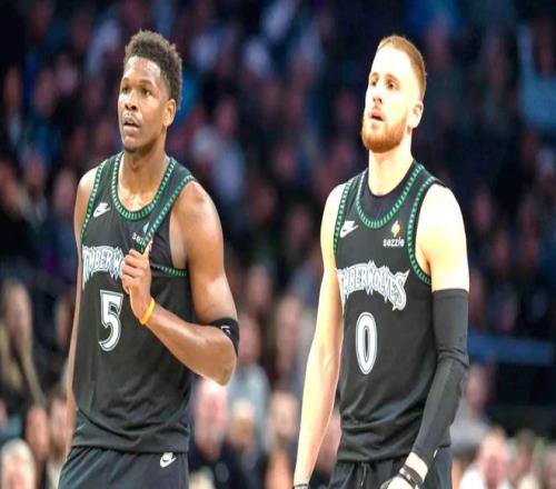 上半場的森林狼,完全是靠著頑強(qiáng)的意志在硬撐。海蘭德大心臟的三分投射、李凱爾精準(zhǔn)的傳球策應(yīng),撐起了球隊(duì)進(jìn)攻。球隊(duì)一度嘗試三后衛(wèi)陣容,依靠道蘇姆、海蘭德、康利輪番突分投射,搭配李凱爾的視野破解夾擊,勉強(qiáng)咬住比分。即便上半場累計(jì)14次失誤,依舊轟進(jìn)9記三分,死死守住戰(zhàn)局沒有崩盤。