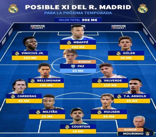 穆里尼奧回歸皇馬陣容預(yù)測:姆巴佩領(lǐng)銜,帕斯回歸,維尼修斯留隊