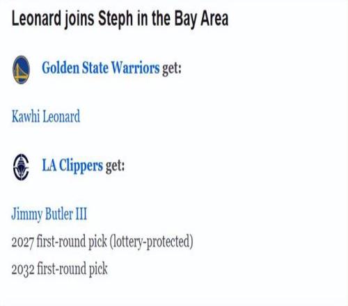 近幾個(gè)月,勇士是和萊昂納德流言綁定最深的球隊(duì),理由十分充分。巴特勒今年1月十字韌帶撕裂賽季報(bào)銷,勇士急需備選引援方案——趁38歲庫里仍處在全明星水準(zhǔn),重新打開爭冠窗口。
