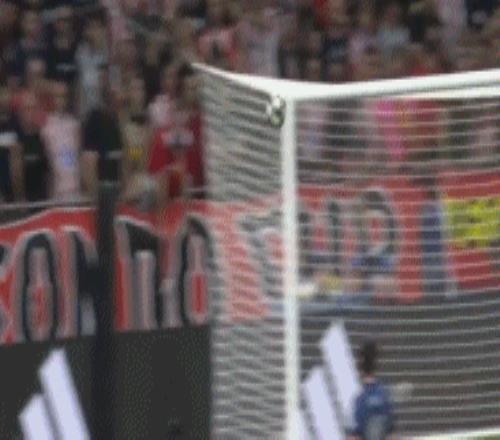 第50分鐘,阿爾瓦雷斯操刀主罰定位球,繞過(guò)人墻直奔右上角,稍稍偏離目標(biāo),皮球打在邊網(wǎng)上,嚇出拉亞一身冷汗。