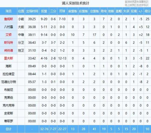 全場(chǎng)比賽湖人除了首節(jié)之外全面被壓制,從數(shù)據(jù)角度來(lái)看有4名球員發(fā)揮太差,頭號(hào)罪人就是肯納德,全場(chǎng)4中0僅得1分,防守端也是防不住只要他在場(chǎng)湖人就輸分。第二罪人就是斯瑪特,今天除了開(kāi)場(chǎng)階段全場(chǎng)夢(mèng)游7投3中得11分6失誤。第三罪人就是里弗斯,全場(chǎng)16中4除了罰球就是擺設(shè)!第四罪人就是詹姆斯,全場(chǎng)20中9第四節(jié)關(guān)鍵時(shí)刻發(fā)揮不好,從被謝潑德?lián)寯嚅_(kāi)始連續(xù)投籃不中。誰(shuí)還說(shuō)湖人回主場(chǎng)是賣票?
