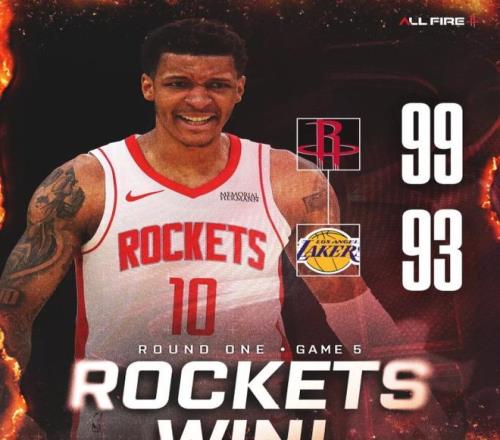 虎撲體育 險(xiǎn)勝湖人!火箭官方曬本場(chǎng)比賽的終場(chǎng)海報(bào),大比分來到2-3