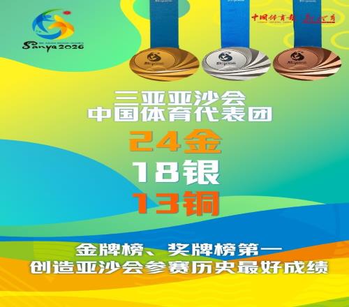 亞沙會(huì)中國(guó)體育代表團(tuán)位居金牌榜首位,24金18銀13銅歷史最佳