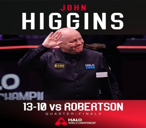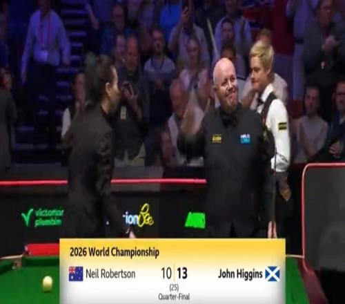 第二階段結(jié)束后尼爾·羅伯遜9-7領(lǐng)先約翰·希金斯,第三階段半場過后雙方戰(zhàn)成10-10,中場休息過后希金斯連勝三局拿下比賽!