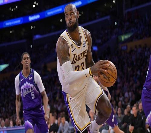 北京時間4月13日,NBA常規(guī)賽收官戰(zhàn),湖人對陣爵士。比賽中。圖源:視覺中國首節(jié)比賽,湖人在詹姆斯的帶領(lǐng)下,進攻端多點開花,很快就取得了領(lǐng)先,首節(jié)結(jié)束,湖人32-22爵士。次節(jié)回來,詹姆斯