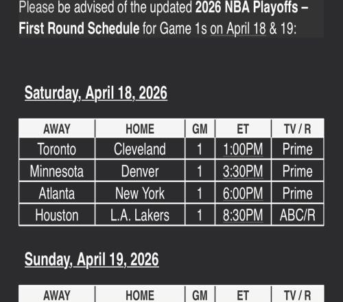 NBA季后賽首輪賽程:周日1點(diǎn)猛龍騎士開打,8點(diǎn)半湖人戰(zhàn)火箭