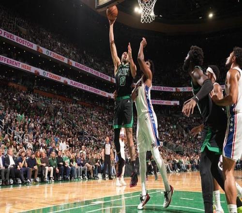 北京時間4月29日,NBA東部季后賽首輪G5,費城76人客場對陣凱爾特人。比賽中。圖源:視覺中國本場比賽開始后,兩隊一...