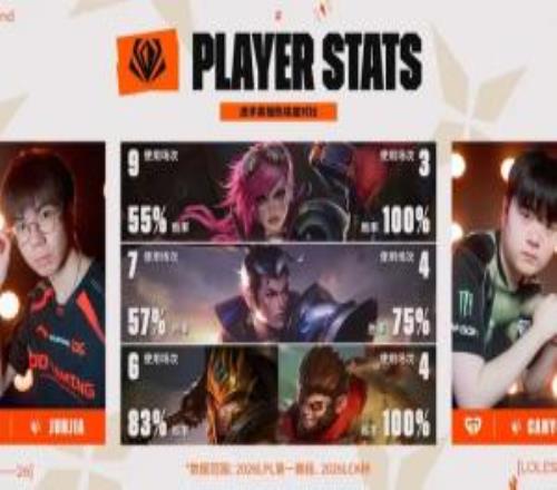賽事官方分享JDG對(duì)陣GEN賽前數(shù)據(jù):Canyon英雄整體勝率高于Junjia