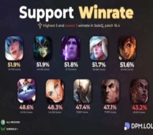 英雄聯(lián)盟下路單排勝率:輔助最高琴女,AD位最高大嘴、第二烏鴉