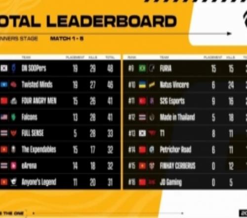 冠軍賽積分榜CN賽區(qū):AG以5分領(lǐng)跑,XLG三分,EDG兩分