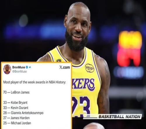 在他身后,分別是科比和杜蘭特的33次,哈登的27次,以及喬丹的25次,在周最佳這個賽道上,詹姆斯完全是斷檔領(lǐng)先的水平。