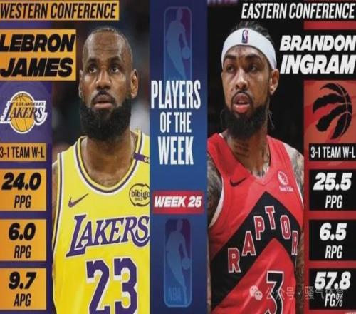 4月14日,NBA官方公布本賽季第25周東西部周最佳球員,其中湖人球員詹姆斯成為西部周最佳球員。