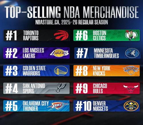 加拿大地區(qū)NBA球衣銷量球隊排名